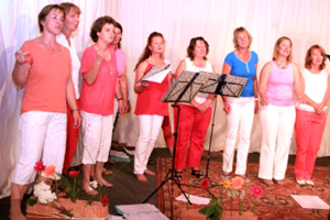 D’Liadalichn, DeiningDer Frauenchor aus Deining besteht aktuell aus 20 aktiven Sängerinnen im Alter zwischen 27 und 60 Jahren. Derzeit singen wir überwiegend ein weltliches Programm, bestehend aus Pop, Rock, Swing und manchmal auch Schlagern. Das Repertoire reicht von Abba über Beatles über Nena bis hin zu Hubert von Goisern. Unser Chor wurde im Juni 2002 gegründet. Für D’Liadalichn spielt nicht nur das Singen eine große Rolle, sondern auch das Miteinander. Bisher machten wir 3 Chorausflüge, nicht um Konzerte zu singen, sondern um miteinander ein fröhliches Wochenende zu verbringen. Ist ein Konzert in dem Jahr geplant, kann es auch sein, dass wir während des Ausflugs einen Probentag machen. Außerdem machen wir einmal im Jahr einen Workshop mit einem Profi-Chorleiter. So wird in diesem April bereits zum 3. Mal Carsten Gerlitz zu uns kommen, um mit uns zu singen.